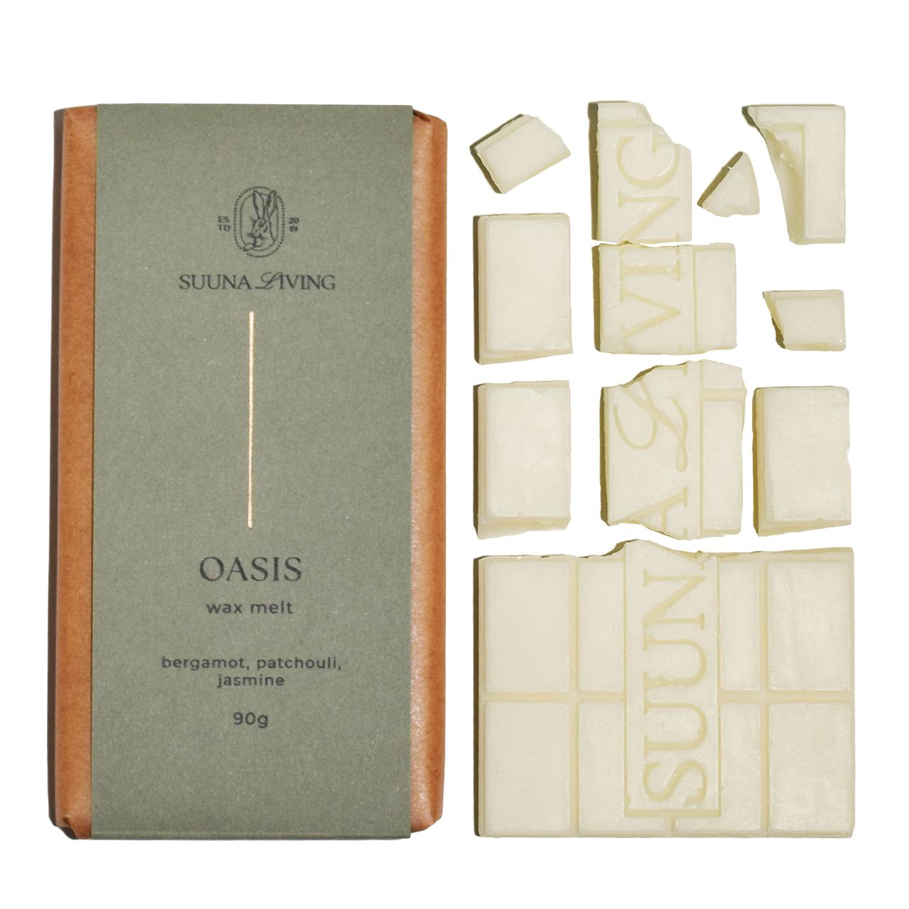 Oasis wax melt is a comforting and calming scent with fresh citrus notes of bergamot and orange and a rich, earthy base of patchouli.