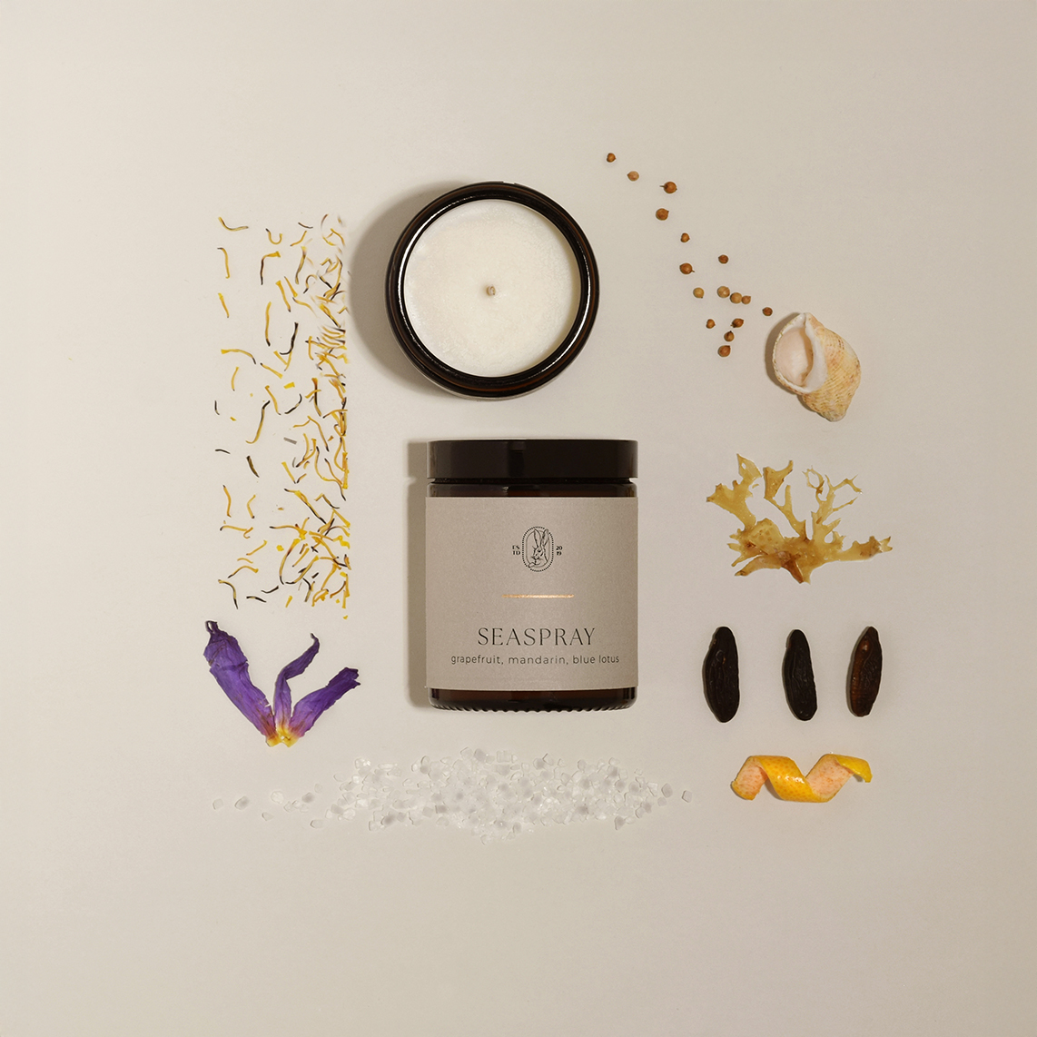 Seaspray wax melt is a beautiful summer scent with fresh notes of grapefruit, mandarin, blue water lotus and sea moss – a pure refreshing essence of the ocean.  Fresh and uplifting it it is truly ” a day on the beach” scent, our personal brand favourite!